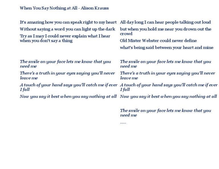 You Will Be My Ain True Love. Youre not much goodness knows. TOP Letras Alison Krauss.